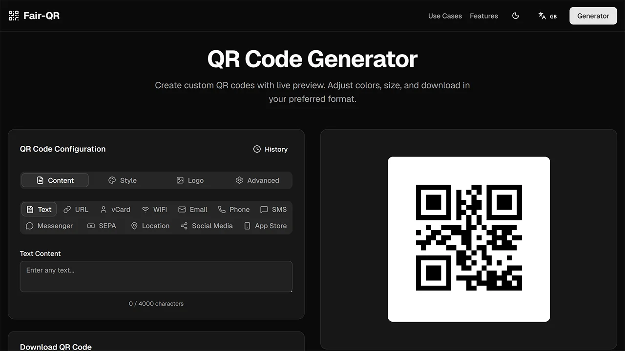 FairQR is a privacy-first and fully free QR code generator that runs entirely in the browser and doesn’t require any signup, login, or personal information. It’s ideal for users who want powerful QR code features with full customization and unlimited free use while prioritizing data handling and transparency.