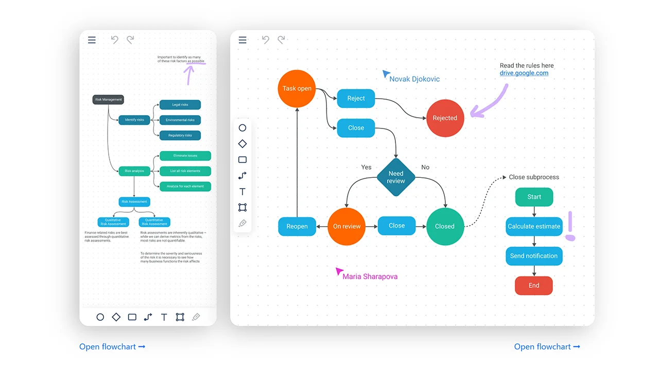 Real-time online whiteboard for teaching, drawing, and collaborating live with others.