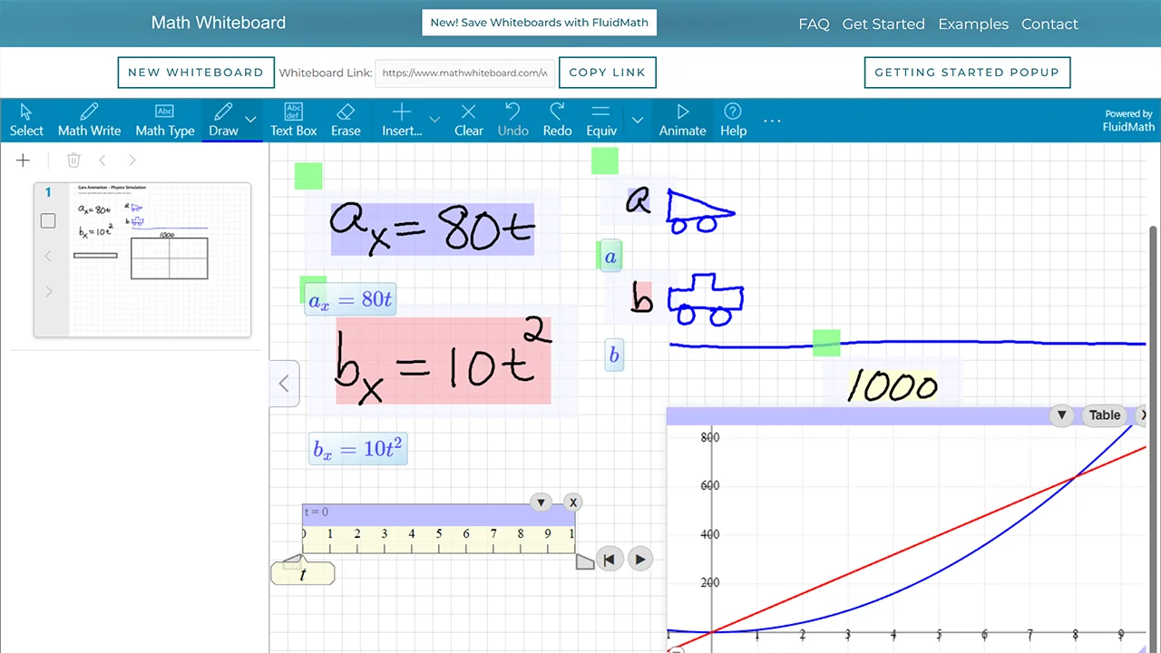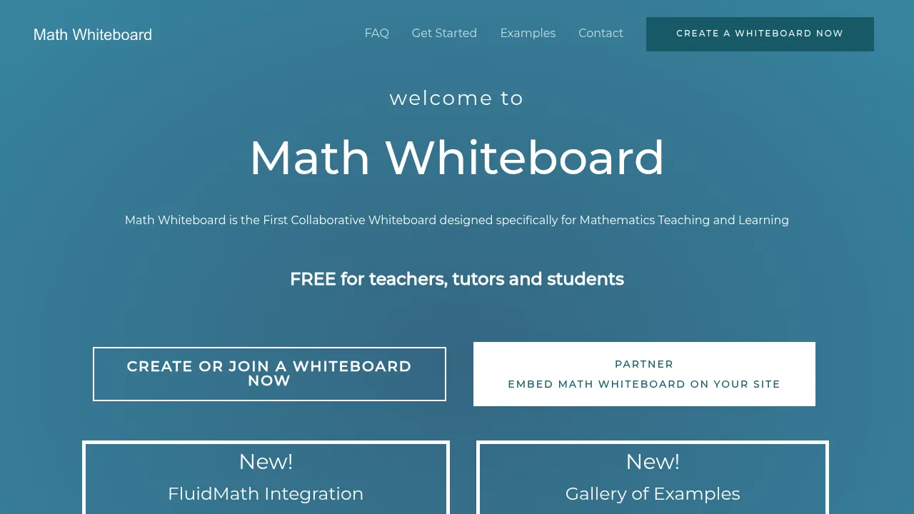 Math Whiteboard is a free, no-signup-required collaborative online tool built specifically for mathematics teaching and learning. It combines an intuitive whiteboard with handwriting recognition or typed math input, a full graphing calculator, computer algebra system for arithmetic to calculus computations, function transformation sliders, and PDF annotation. Teachers and students benefit from seamless real-time collaboration, device compatibility (including Chromebooks and tablets), and instant access to visualize and explore math concepts without any barriers or installations.